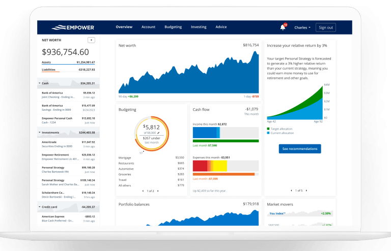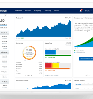 Get the full picture of your personal finances in real time by linking up your various accounts to track your assets, liabilities, net worth, and performance against benchmarks.